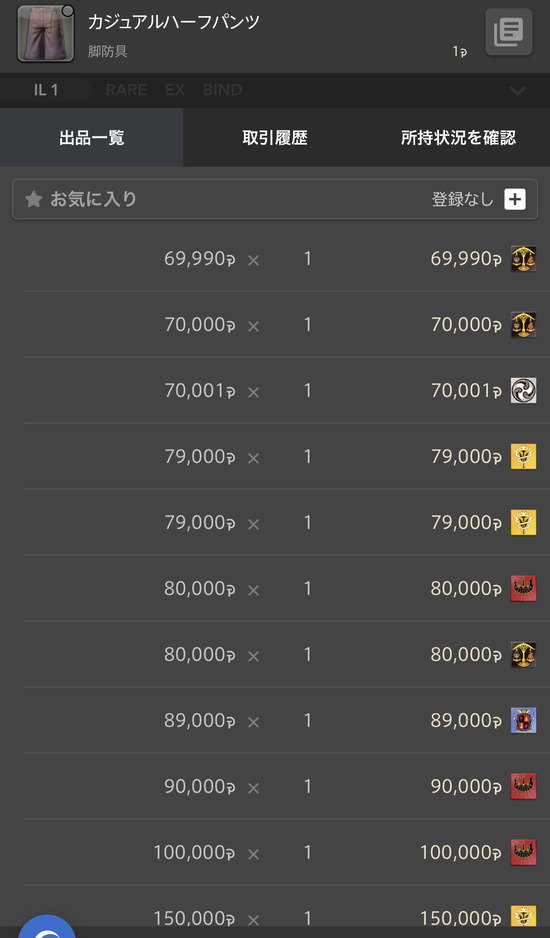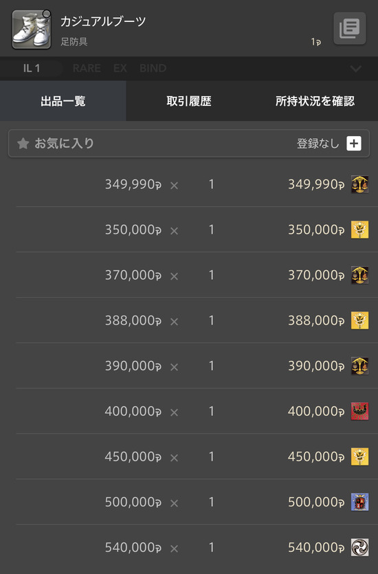 ギャザ素材1個1000ギル以下ばらそっちの方が復興券も上手い