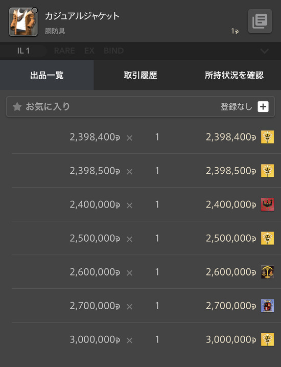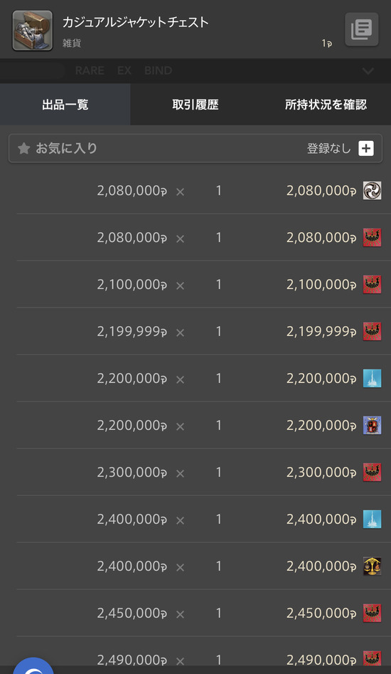 ギャザ素材安くなりすぎてクラで1個下のレシピを1マクロでしてカジュアルチェスト狙う方が儲かる