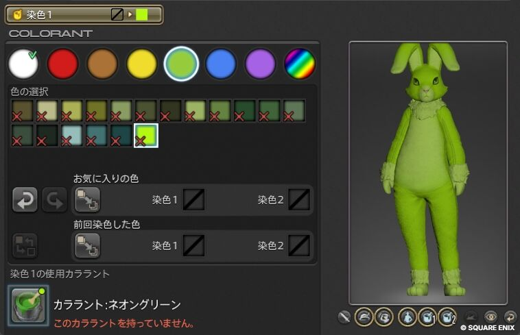 あとはどうしても染色アイテムがある世界観を守りたいのであれば、一定のクエストを経験した人だけ売店で販売している染色に限りパレットで自由に染められるとか。